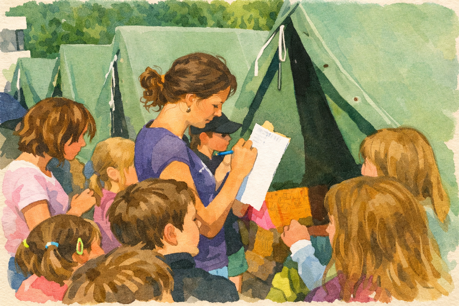 Do 9:00 musí děti zvládnout hygienu a úklid stanů.